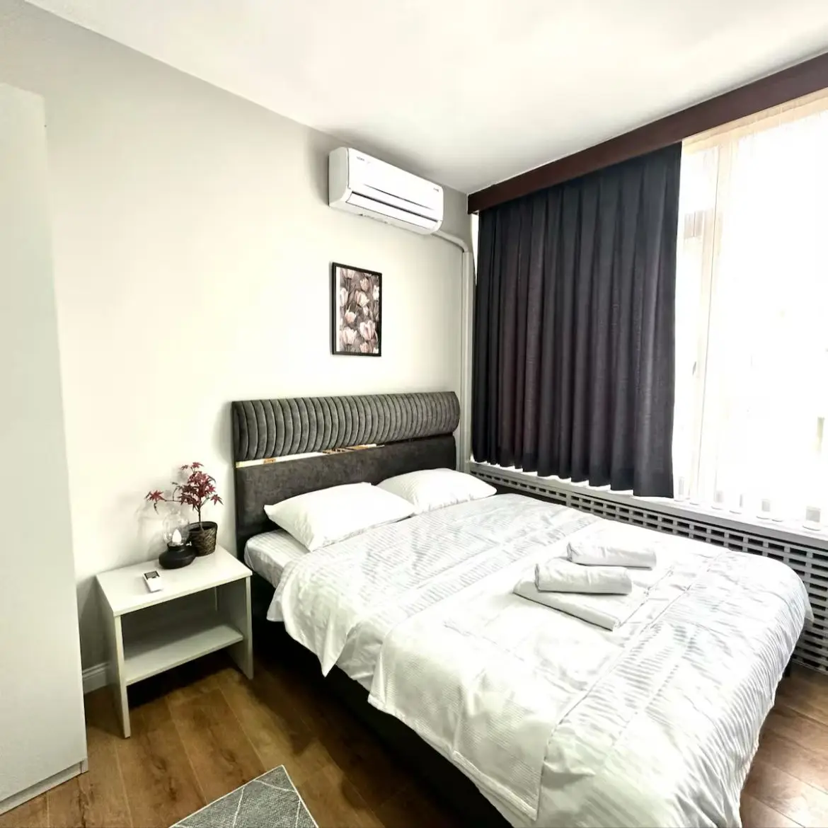 Dairemiz, ferah 1+0 planıyla misafirlerine konforlu bir konaklama deneyimi sunmaktadır. İçerisinde bir yatak odası ve bir banyo bulunmaktadır. Yatak odasında yer alan çift kişilik yatak, kaliteli nevresim takımlarıyla size huzurlu bir uyku imkânı sağlar. Evde bulunan klima, dört mevsim boyunca keyifli ve ideal bir iklimlendirme sunar. Ayrıca, konaklamanız süresince ihtiyaç duyabileceğiniz pek çok donanıma da sahipsiniz: Ocak Filtre kahve makinesi Çay makinesi Buzdolabı Çamaşır makinesi Saç kurutma makinesi Tüm gerekli mutfak ekipmanları Kaliteli yatak ve nevresim takımları Tüm detaylarıyla özenle hazırlanmış dairemiz, hem kısa süreli konaklamalarınız hem de uzun vadeli ihtiyaçlarınız için idealdir. Sıcak bir ev ortamında, tüm ihtiyaçlarınıza cevap verecek şekilde tasarlanmıştır.