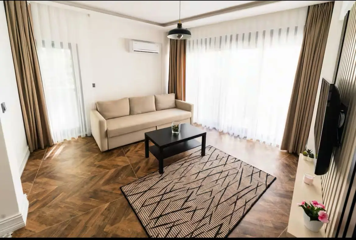 Dairemiz 1+1 planına sahiptir; 1 adet yatak odası ve 1 banyo bulunmaktadır.Yatak çift kişiliktir Salon kısmında yer alan klima ile konforlu bir iklimlendirme sağlanmaktadır. Dairede konaklamanız süresince kullanabileceğiniz birçok donanım mevcuttur: Ocak Çay makinesi Mini Buzdolabı Saç kurutma makinesi Gerekli tüm mutfak ekipmanları Kaliteli yatak ve nevresim takımları Tüm ihtiyaçlarınıza cevap verecek şekilde donatılmış olan dairemiz, hem kısa hem uzun süreli konaklamalar için idealdir.