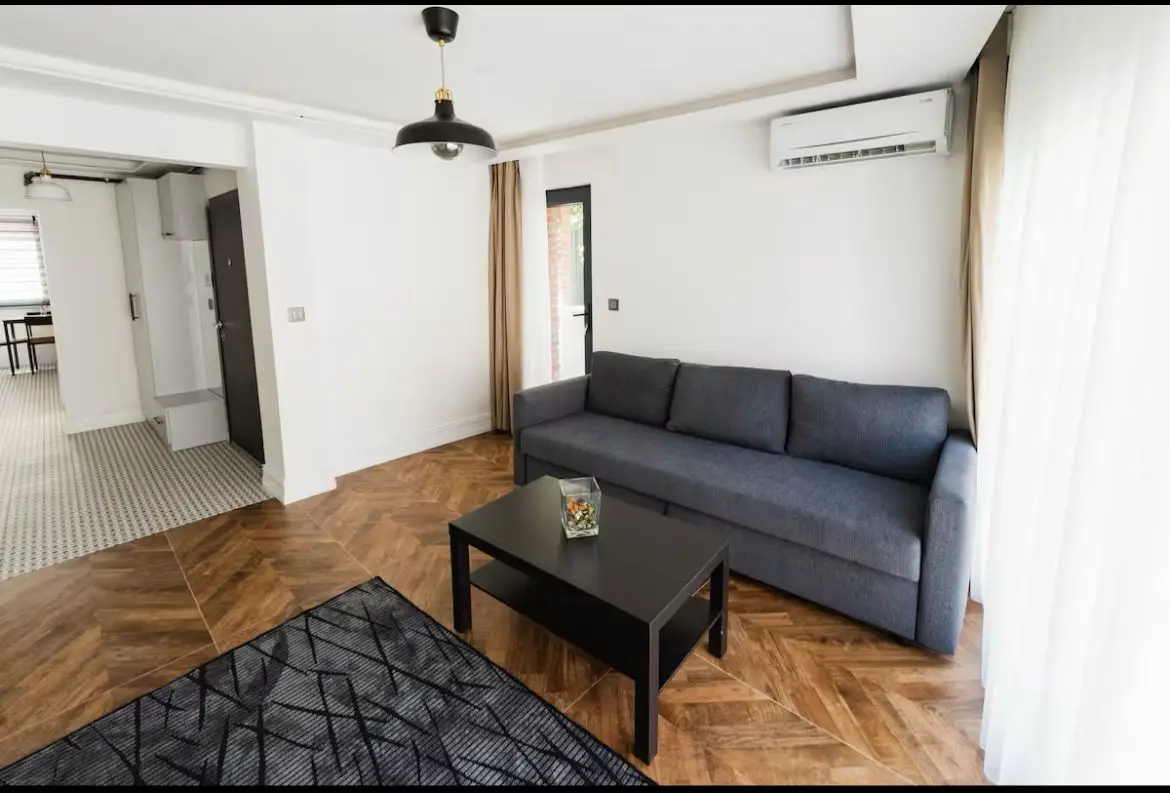 Dairemiz 1+1 planına sahiptir; 1 adet yatak odası ve 1 banyo bulunmaktadır.Yatak çift kişiliktir Salon kısmında yer alan klima ile konforlu bir iklimlendirme sağlanmaktadır. Dairede konaklamanız süresince kullanabileceğiniz birçok donanım mevcuttur: Ocak Çay makinesi Mini Buzdolabı Saç kurutma makinesi Gerekli tüm mutfak ekipmanları Kaliteli yatak ve nevresim takımları Tüm ihtiyaçlarınıza cevap verecek şekilde donatılmış olan dairemiz, hem kısa hem uzun süreli konaklamalar için idealdir.